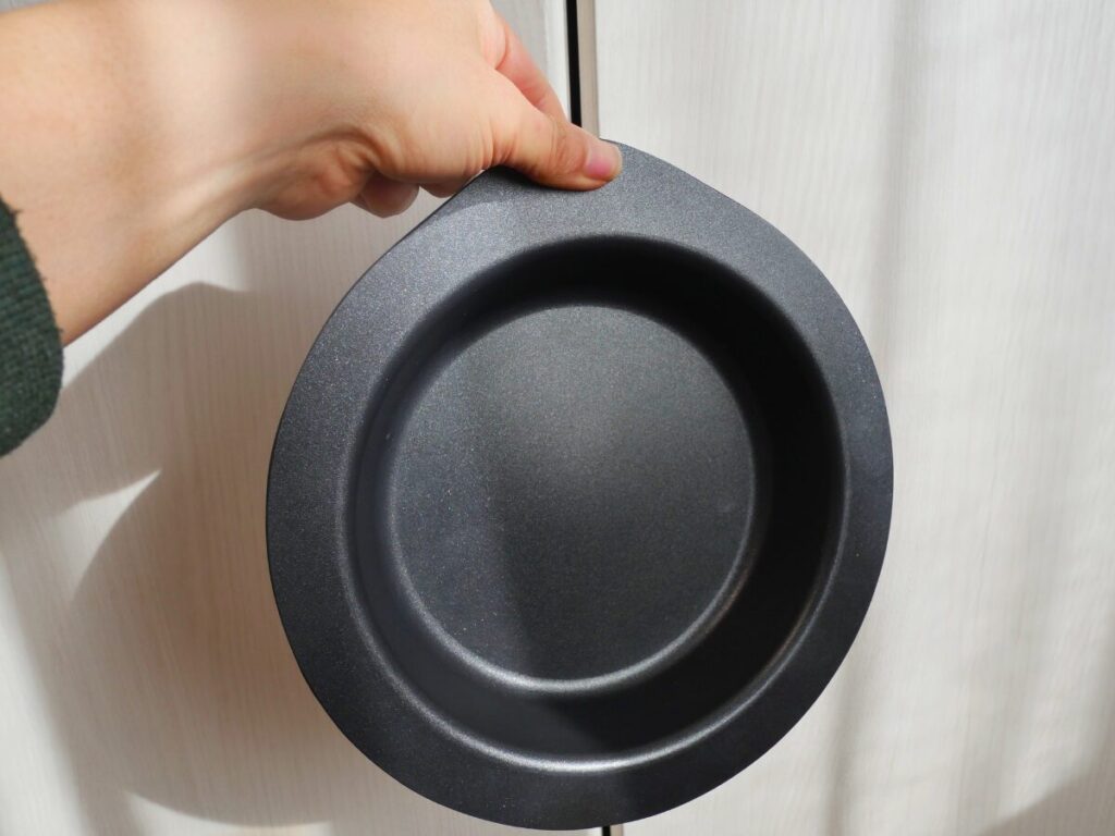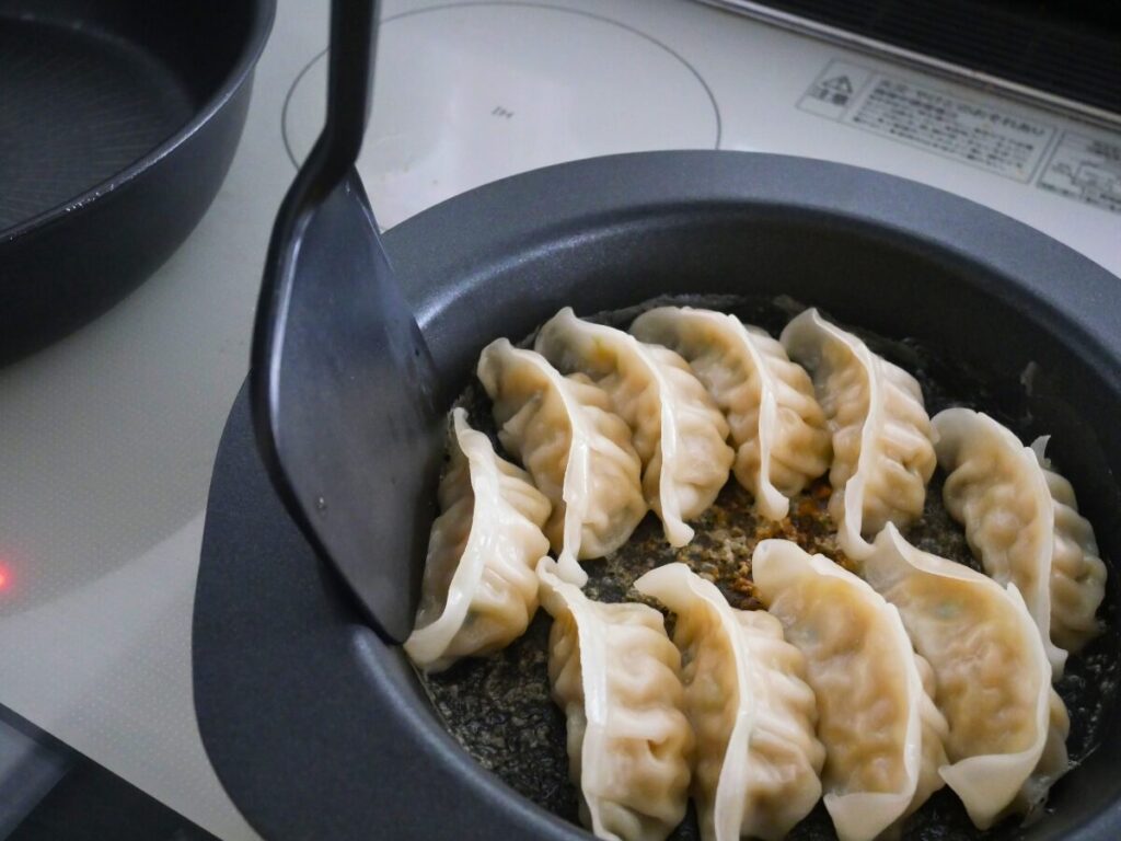深さ4cmの縁があるのは、ラーメンや鍋料理には最高なんですが、逆に餃子とかお好み焼きをひっくり返す時、ちょっとフライ返しが入れにくい。