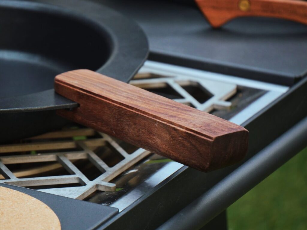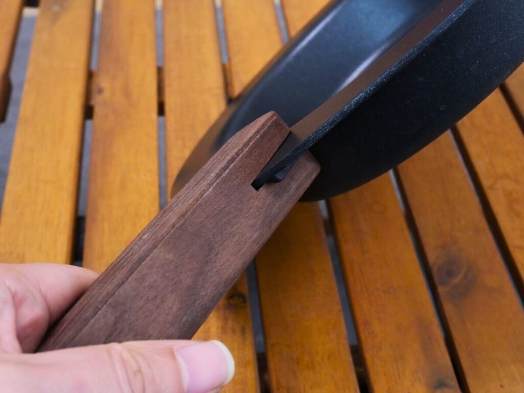 ウォールナットの取っ手は見た目も良く、つい付けっぱなしで使いたくなりますが、火力によっては取っ手が焦げてしまう恐れがあります。