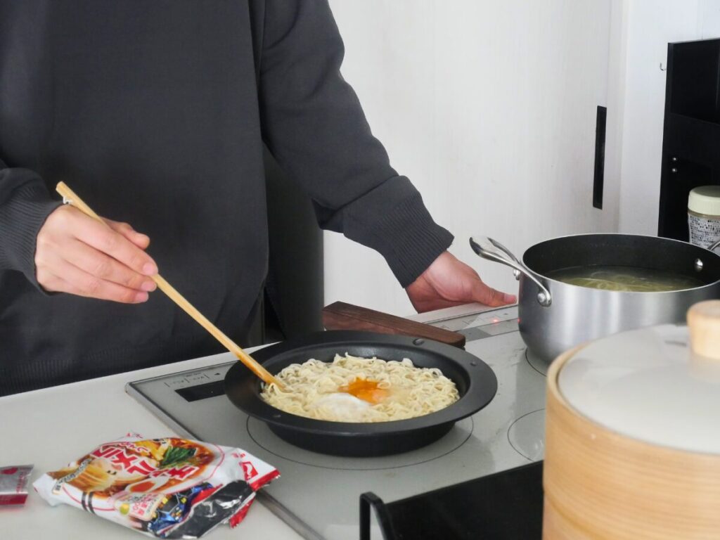 作る器と、食べる器が同じ。これだけで、「昼ごはんを作る」という行為がかなり軽く感じられました。
