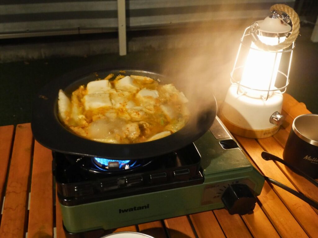 ディッシュグリルは深さもあるので、ひとり鍋にはちょうどいいサイズ感です。