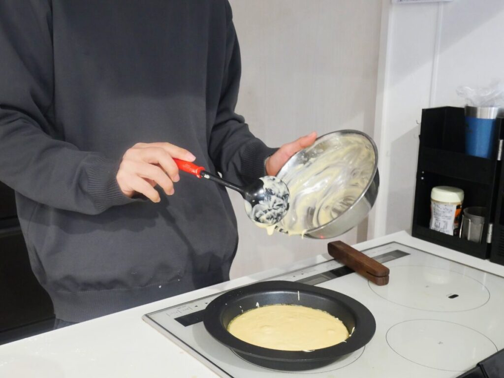 ディッシュグリルはフチがあるので、生地が流れにくく、厚みのあるふっくらした仕上がりに。